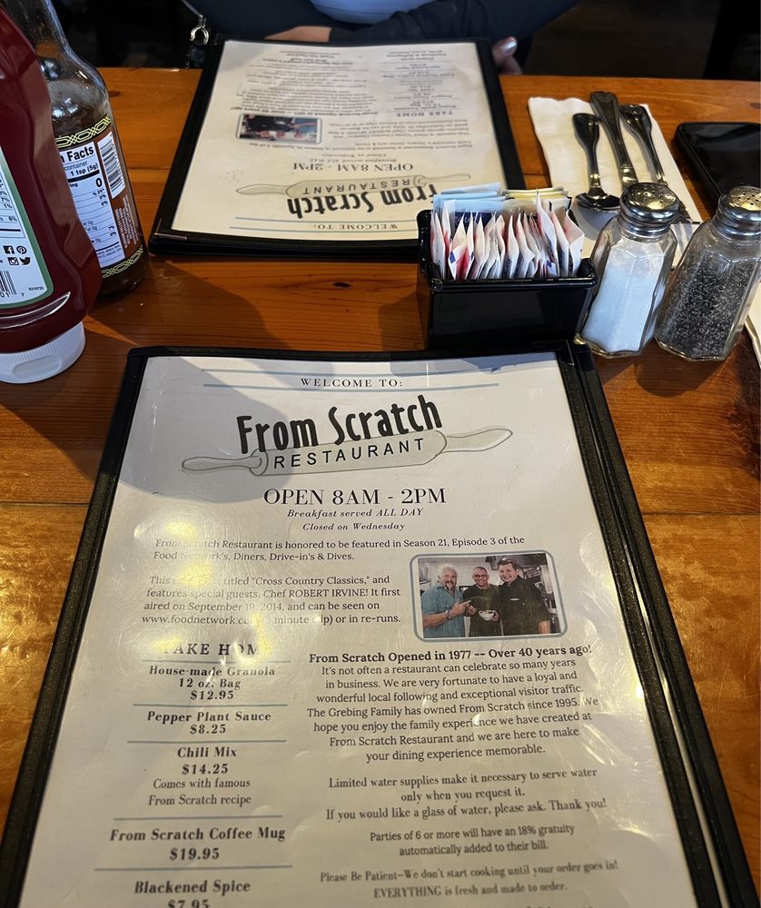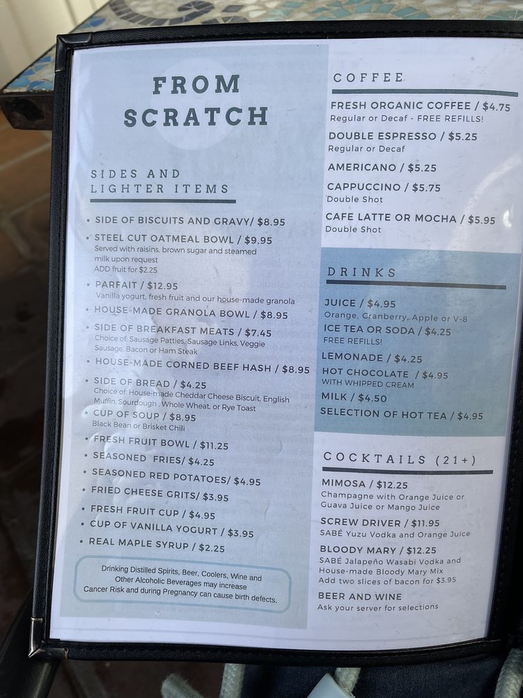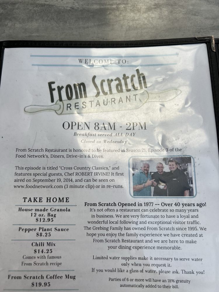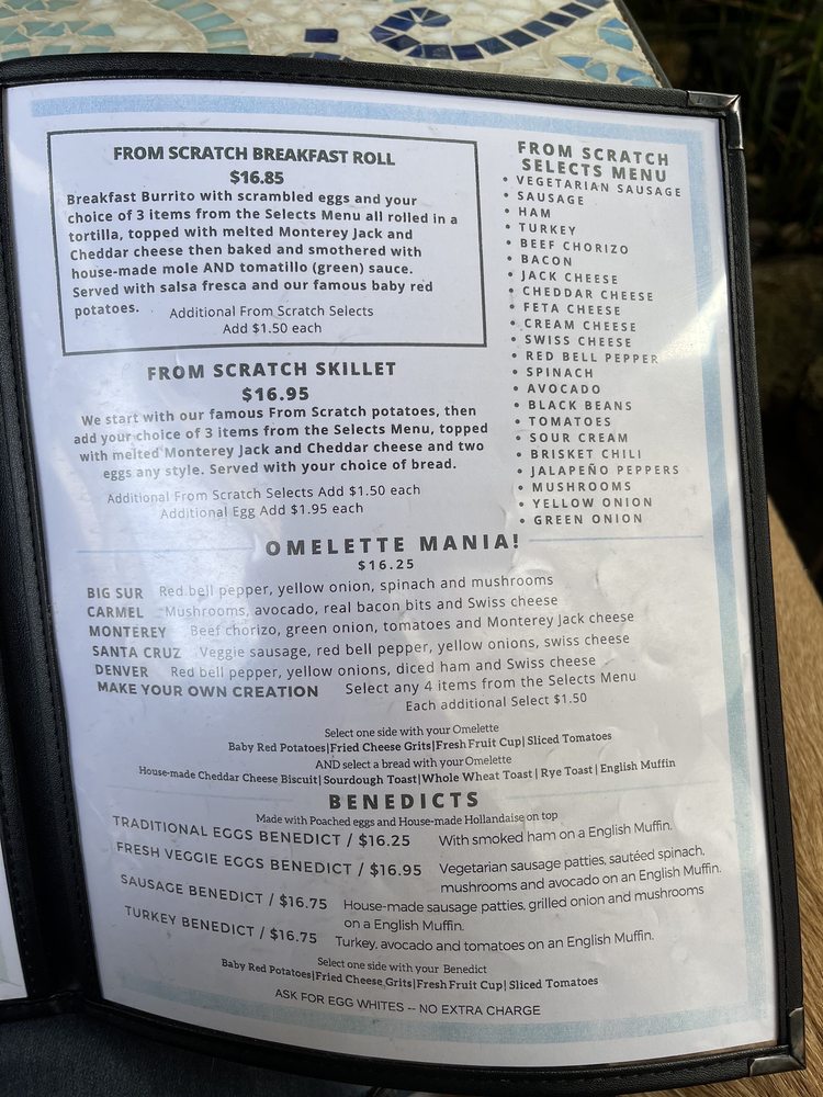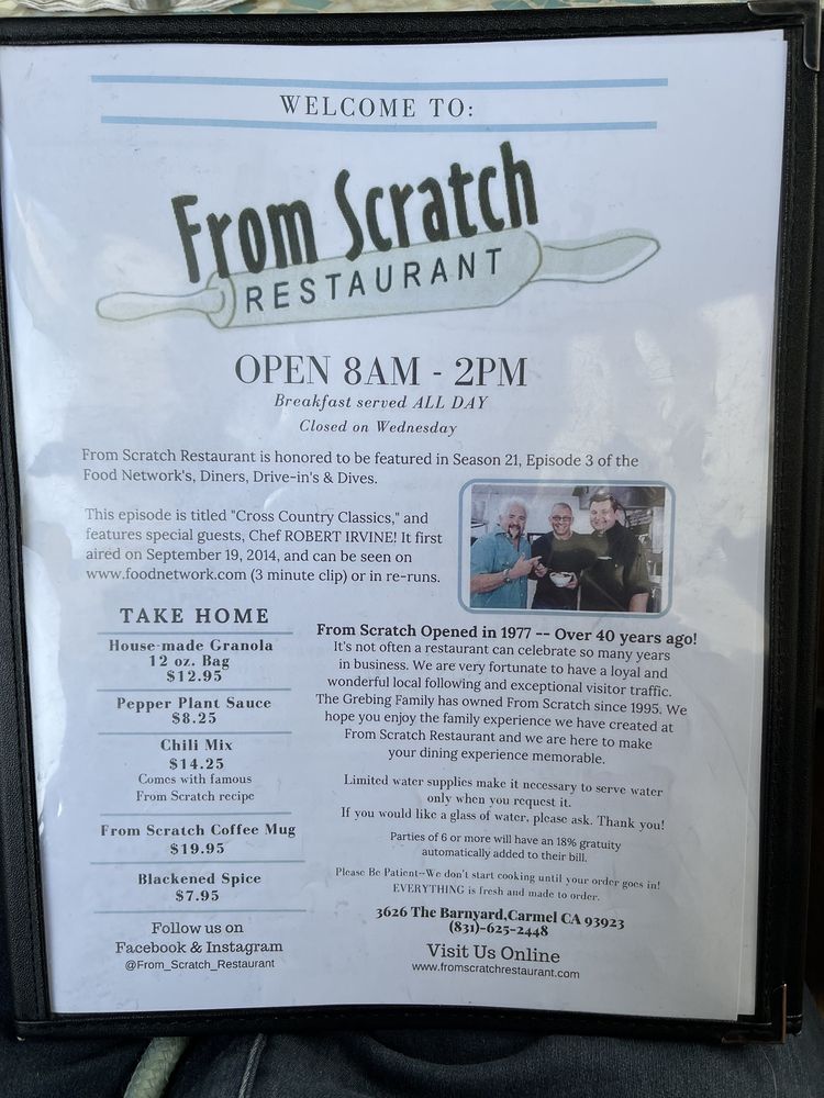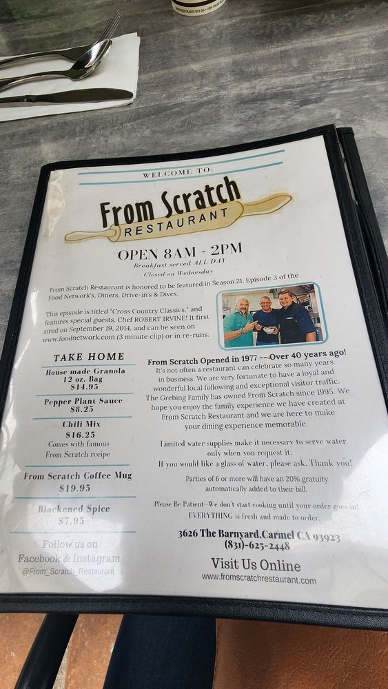 "From Scratch Restaurant, located in Carmel, CA, is a versatile dining spot offering a wide range of amenities including vegan options, wheelchair accessibility, and dog-friendly outdoor seating. This classy yet casual establishment excels in serving delicious breakfast options like the popular egg breakfast, traditional breakfast skillet, and mouth-watering sides such as homemade granola and thick-cut bacon. The beverage selection offers refreshing choices like mimosas and coffee, enhancing your dining experience. Customer reviews rave about the friendly service, welcoming ambiance, and delectable dishes like cinnamon roll pancakes and huevos rancheros. From Scratch Restaurant truly stands out as a must-visit brunch destination, providing exceptional food quality and a memorable dining experience for all patrons."